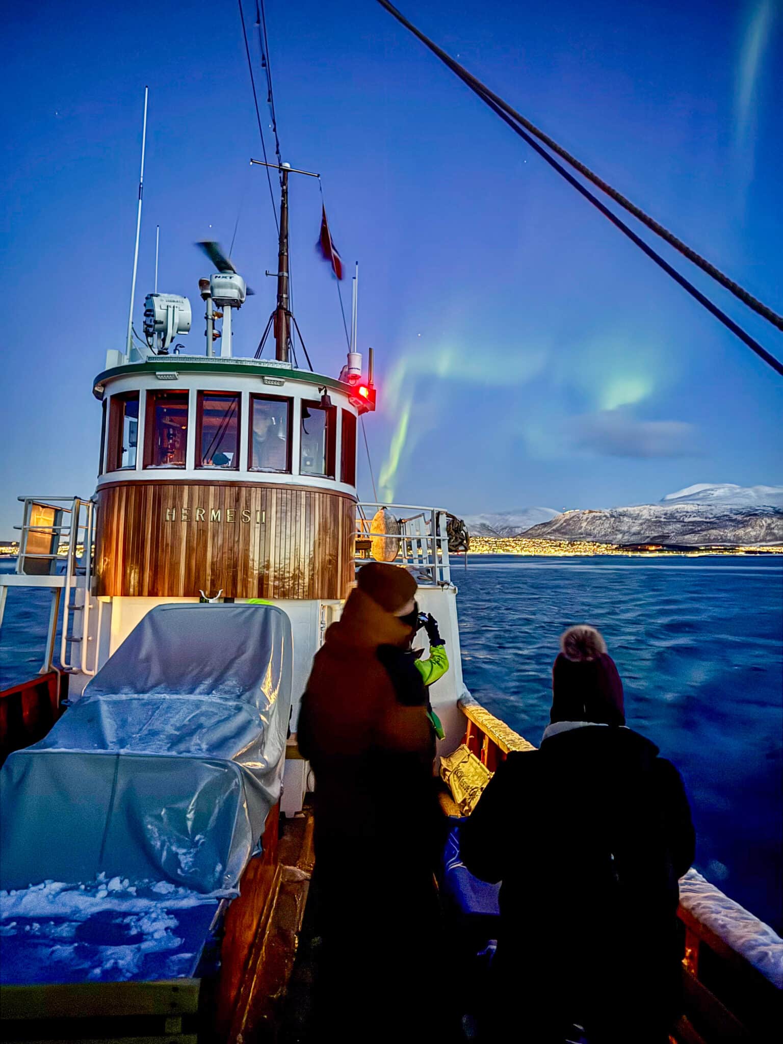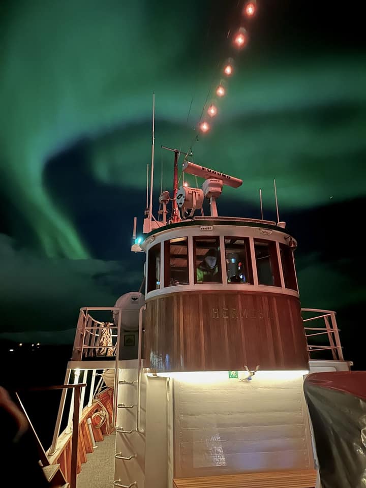 Step aboard the beautifully restored wooden boat Hermes II, built in 1917, and feel the charm of a bygone era as we cruise through the Arctic landscape. This journey is more than just a boat trip – it’s also an opportunity to witness the mesmerizing Northern Lights dancing across the sky, adding a magical touch to your adventure on a clear skied night.