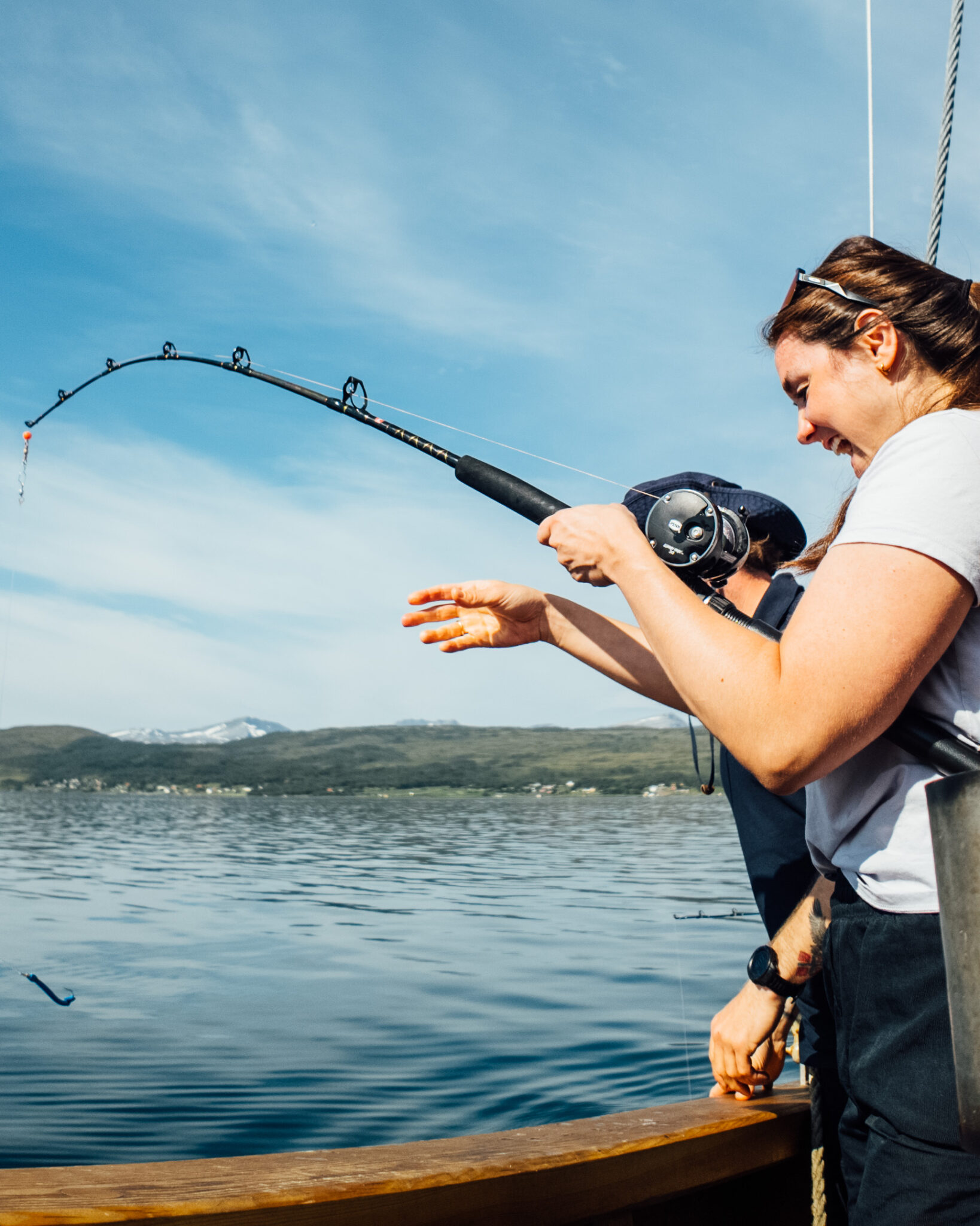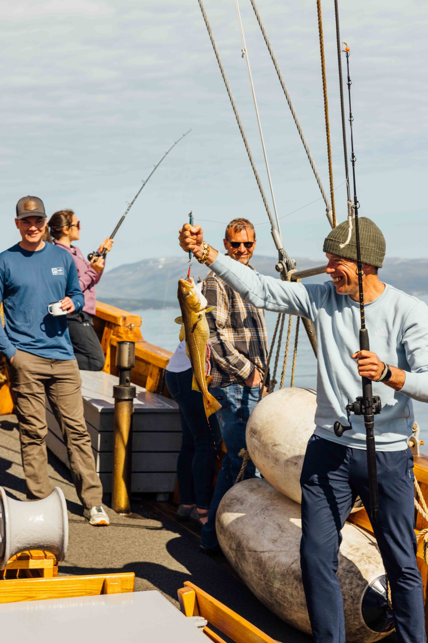 Experience a genuine coastal adventure aboard the historic vessel Hermes II from 1917. Our skipper will take you to the best fishing spots in the area. Enjoy the thrill of fishing, feel the calm on board, and hear the unique stories of Hermes II. The trip is well organized, with 5–6 fishing rods in use at the same time to avoid tangled lines. If we are lucky with the catch, freshly caught fish is served on board with butter and flatbread. During the trip, you will also be treated to a steaming hot Norwegian fish cake from our local Fish Monger, served straight in your hand.