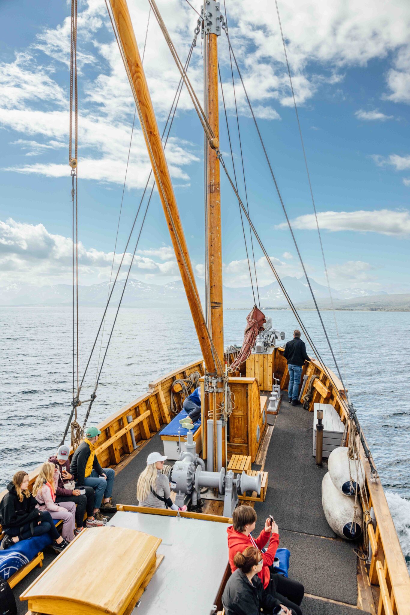 På dekk kan du vandre rundt og nyte stemningen eller slå deg ned på sitteplasser. Pledd og sitteunderlag er gode å ha når du vil varme deg litt, og synes du fortsatt det er litt for kaldt har vi varmedresser du kan låne.