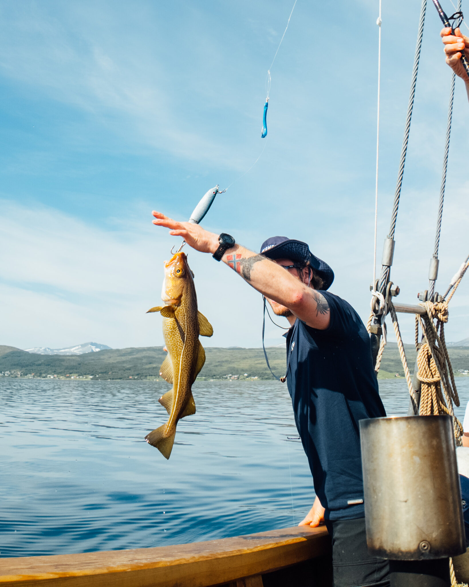 Skipperen staker ut kursen mot gode fiskeplasser, litt etter vær og vind. Ta med egen stang, bruk en av våre – eller bare bli med og nyt turen. Kombinasjonen trebåtfred og fiskespenning er uslåelig. Stemningen kan gå fra total ro når du tar inn omgivelsene med en kaffekopp i hånda, til ekstatisk når det napper i snøret. Og er fangsten god, så får du servert fersk fisk med flatbrød og smør – på ekte nordnorsk vis! Vi begrenser antallet stenger i bruk samtidig til 5-6 for å unngå vaser med snøret. Fiske vil derfor gå på omgang. Lokalkjent vertskap forteller om byen og omgivelsene vi seiler i og gir deg Hermes II sin spennende historie. På disse turene er det god tid til å bli godt kjent om bord på den unike, gamle båten. Det er bare å glede seg! Velkommen om bord!